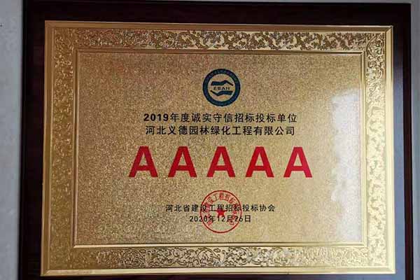 近幾年來我公司被授予2019年-2022年河北省扶貧龍頭企業(yè)、2018年國家林業(yè)標準化示范企業(yè)、2019年度全國苗圃50強、2018-2019年度河北省林業(yè)重點龍頭企業(yè)、2018年保定市精品特色現(xiàn)代農(nóng)業(yè)園區(qū)、2018年度保定林木種苗協(xié)會授予特色苗圃、2018年度北方十佳特色苗圃、2016-2019年河北省建設工程招標投標誠實守信5A級施工企業(yè)等榮譽稱號,2017年保定市林木種苗龍頭企業(yè)、石家莊市2017年度優(yōu)秀園林企業(yè)。